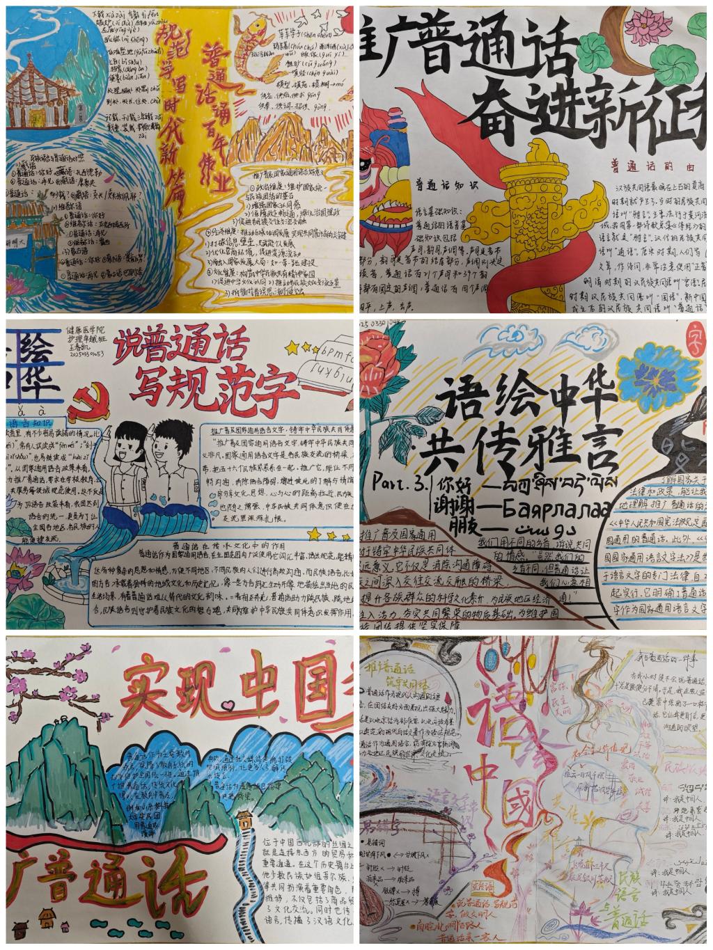 9月18日,学院以“语绘中华·共传雅言”为主题,鼓励学生通过手抄报创作展现国家通用语言文字与中华民族共同体的紧密联系。活动设置了“普通话助力文化传承”“跨民族语言沟通故事”“易错字科普”等子方向供学生参考。同学们踊跃参与,创作出一批内容丰富、形式新颖的手抄报作品,既展示了普通话知识,也融入了对中华民族共同体的理解与感悟。经评审,优秀作品分获一、二、三等奖,并在求实楼集中展示并颁奖。