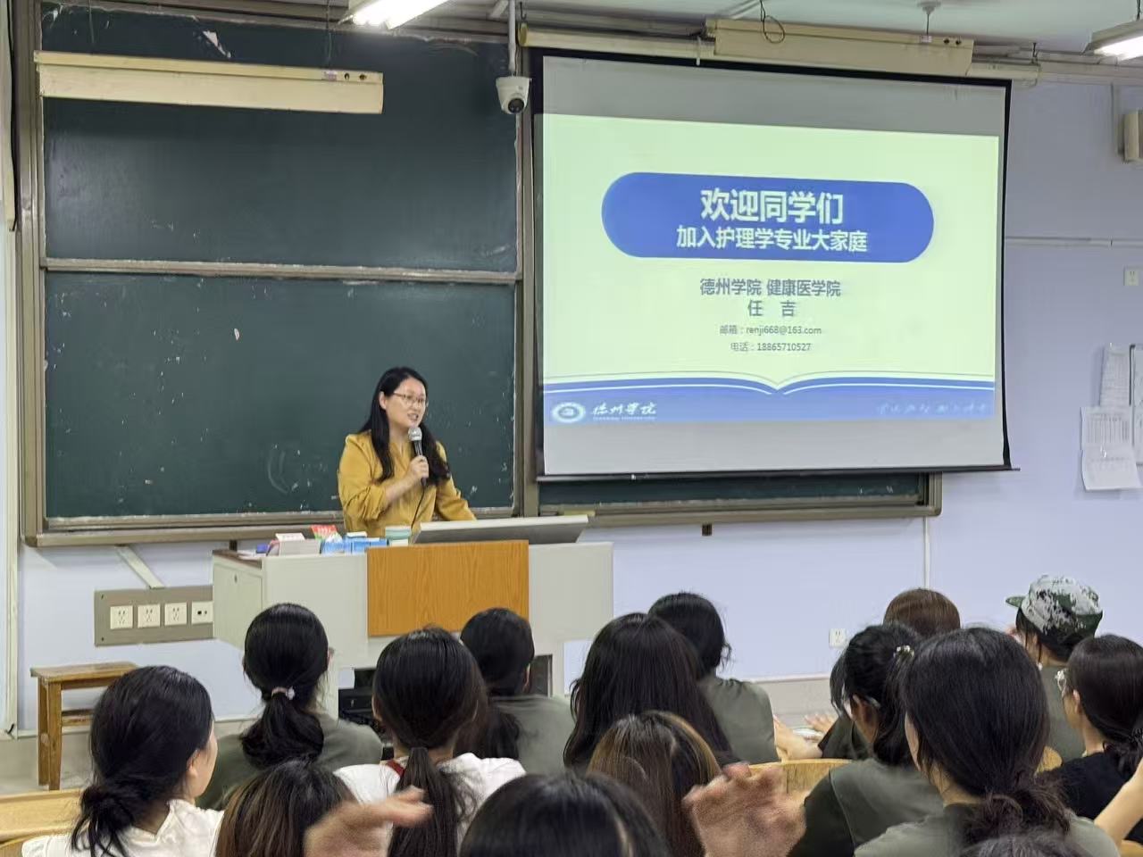 系主任以“护理人的使命与成长”为主题,为新生带来了一堂深入浅出的专业启蒙课。她结合老龄化社会对护理人才的迫切需求、智慧医疗背景下护理技术的不断创新等行业现实,系统阐述了护理学在当代社会的重要价值与发展前景。在介绍专业培养路径时,她详细解读了“理论学习+模拟实训+临床实习”三段式培养模式,从解剖学、生理学等基础课程,到护理操作模拟训练,再到与多家三甲医院合作的临床实践,逐一梳理关键学习环节与重点。现场还分享了一批优秀校友的成长经历,通过真实动人的案例,使新生对“白衣天使”的职业内涵有了更深刻的理解,进一步激发了对专业学习的兴趣与向往。
