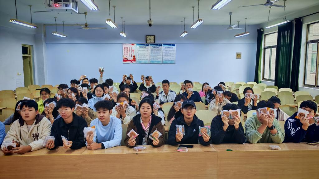 活动伊始,辅导员老师细致讲解国庆的历史意义与中秋的文化内涵,从“天涯共此时”的诗句共情,到“家国同构”的情感联结,让学生们在理解节日文化的同时,感受到“思念可寄于家国”的慰藉,疏解思乡心绪,筑牢情感根基。随后,学院精心筹备的月饼礼盒递到学生手中,每一份礼盒都包裹着香甜与心意,以实物为载体传递学院关怀,让异乡学子真切感受到“留校如归家”的温暖。最后,师生围绕“家国团圆”进行畅谈,学子们敞开心扉分享对家乡的牵挂,也在交流中引起共鸣,这份集体温暖让思乡牵挂转化为对校园的归属感,更让家国情怀在共情中扎根。