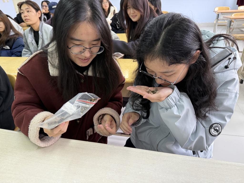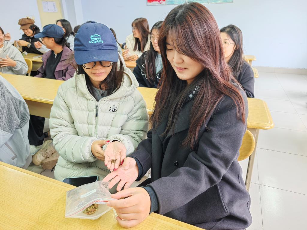 活动伊始,主讲人以中医药材为切入点,紧扣主讲解中医药文化在调节大学生身心健康、提升免疫力等方面的独特价值,激发同学们对中医药文化的兴趣。随后,主讲人通过“实物展示+知识科普”的形式,现场分发艾草、枸杞、山楂等药材标本,结合性质、气味与养生功效,生动呈现了中医药"治未病"的智慧。同时致讲解中医药在日常健康管理中的多元应用场景,让同学们切实体会传统药的实用价值。现场互动环节中,同学们通过观察药材形态、闻辨药香,切身感受到传统医药的实用性与科学性。活动结束后,同学们纷纷感悟,这次活动加深自己对中医药材形态特征与文化内涵的认知,进一步激发对传统医药文化的探索欲。