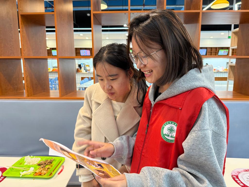 活动伊始,主讲人以“勤俭”为主题,巧妙打破大众对勤俭节约的传统刻板印象,创新性倡导“节约即时尚”的生活理念,为整场活动的有序推进筑牢思想根基。随后,系统讲解勤俭知识,明确“勤俭养德,拒绝粮食浪费”的核心要求,确保志愿者们学深悟透。宣讲结束后,志愿者前往校园餐厅开展实践服务,手持世界节俭日宣传海报,向用餐同学细致讲解“光盘行动”的意义、浪费食物危害、日常餐饮节约小技巧,让勤俭风尚在校园中广泛传递。最后,主讲人总结核心要点,回顾勤俭知识,进一步深化同学们的节约意识。