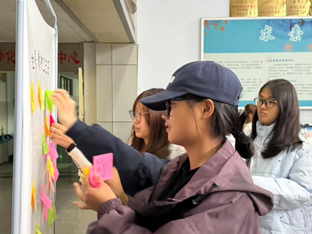 活动现场洋溢着青春的活力与真诚。同学们勇敢撕去“社恐”“敏感”等束缚心灵的旧标签,转而用彩笔和文字在空白卡片上自由挥洒,重新定义自我。当一张张独具特色的“心灵名片”在手中诞生,有同学难掩欣喜:“原来摘下‘社恐’面具,我也能成为社交达人!”另一侧,神秘的心理盲盒前排起长龙,每张卡片都藏着一份心理调适的实用锦囊——从平复焦虑的呼吸法则,到提升专注的冥想口诀。同学们从拆开盲盒时的满眼期待,到读懂方法后的嘴角轻扬,心理健康知识在轻松愉快地互动中悄然传递。“被理解的感觉,真好!”一位同学的感慨,引起了深深的共鸣,也为整场活动写下了最温暖的注脚。