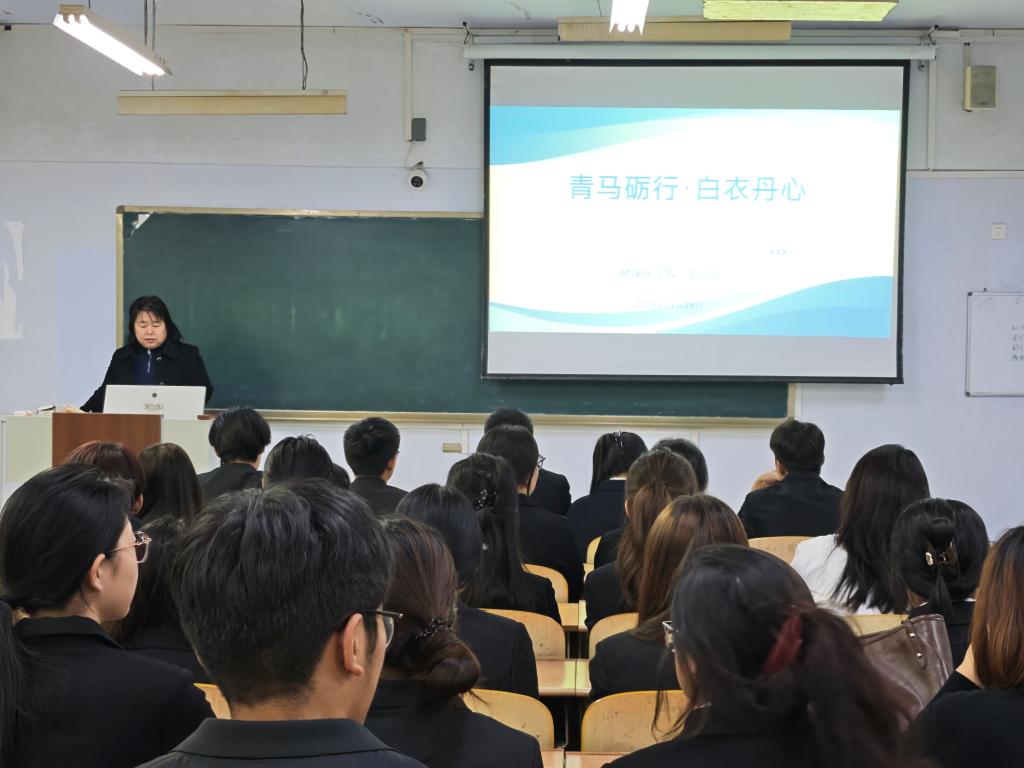 讲座以“健康所系,性命相托”的南丁格尔誓言为切入点,紧密围绕党的二十届四中全会精神和“健康中国2030”战略部署展开。主讲人从“深读经典铸魂”出发,带领学员研读理论著作,构建“护理共同体”理念,夯实思想根基,帮助学员树立正确的职业价值观,为未来投身护理事业筑牢精神支撑。